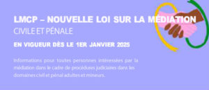 La loi sur la médiation civile et pénale, adoptée le 24 mai 2023 par le Grand Conseil neuchâtelois, est entrée en vigueur le 1er janvier 2025. Elle a pour buts de donner un cadre à la médiation dans les procédures judiciaires et de favoriser l’accès à ce mode de résolution des conflits.